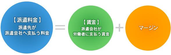 26.8% ※マージンには、派遣元事業者として会社負担する健康保険・厚生年金・雇用保険・労働保険の費用となる事業運営として営業社員の人件費及び活動費・法定手続費・事務所費・通信費等・福利厚生費、研修費・派遣労働者の募集にかかる求人媒体費、登録会場費等が含まれています。 |