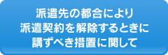 労働者派遣契約の中途解除によって、派遣労働者の雇用が失われる事を防ぐ措置に関しては、個別の派遣契約書、労働j条件通知書にて明記しています。
